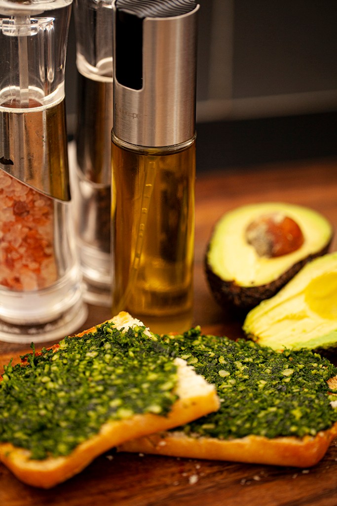 There is a small roadside stall had cheap ripe avocados, homegrown tomatoes and bush lemons. I toasted Turkish bread, used the pesto as a spread, add a soft poached, avocado and topped with a fresh sprig of curled leaf parsley for decoration. As I can’t eat avocado I swapped it out with tomato.