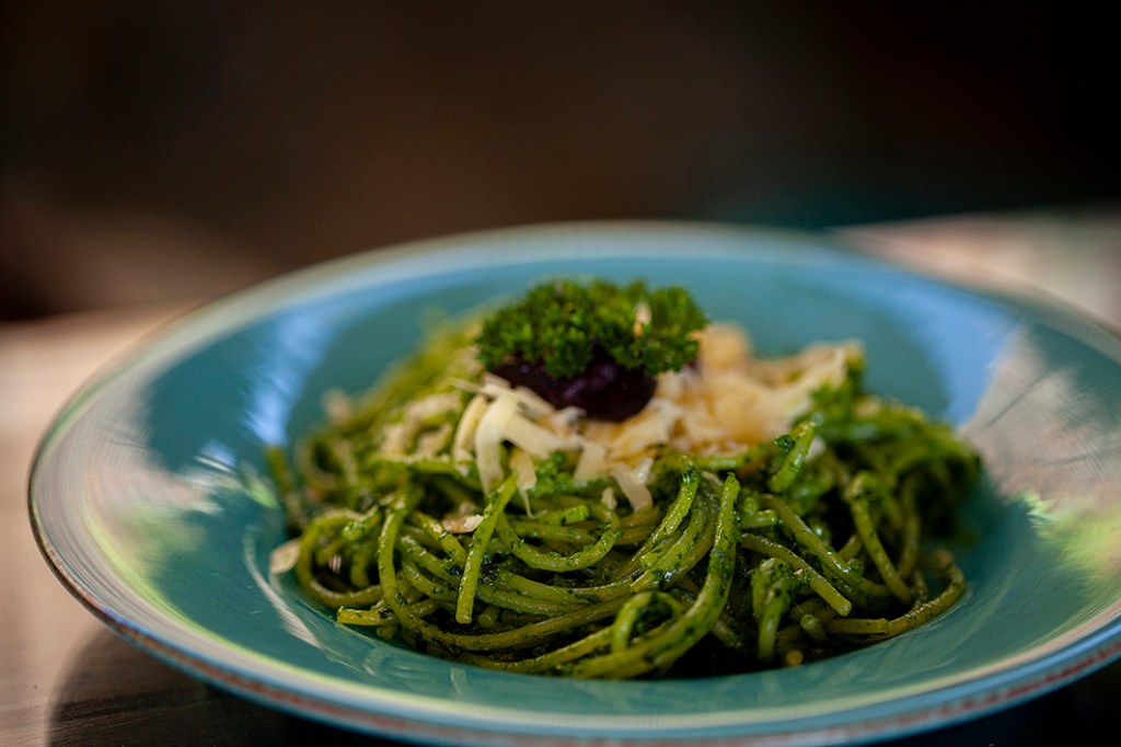 Parsley is great for FODMAP diets. The Tabouleh is also fine but the bulgur is a wheat product so can be replaced by quinoa. Garlic and spring onion, not so good, but I usually only use the green part of the shallot and Garlic infused oil. With the pesto the issue is the almond, restricted amounts – so a substitute could be found.