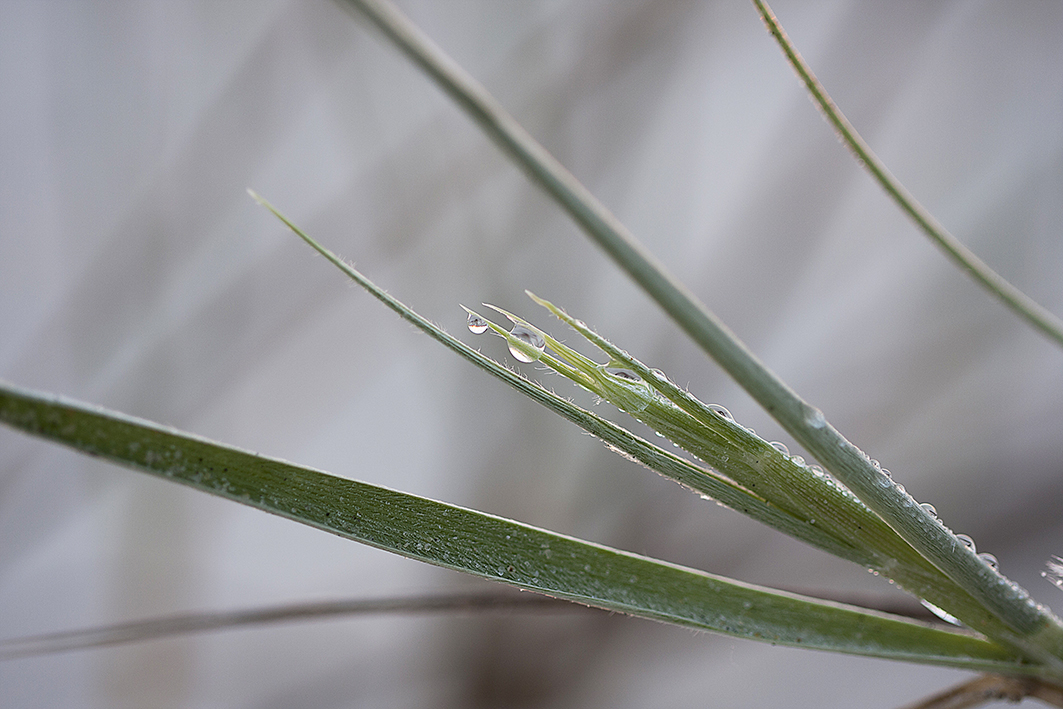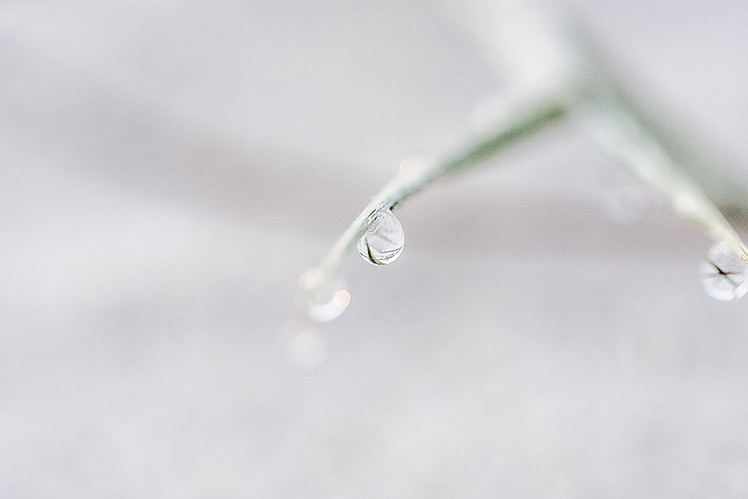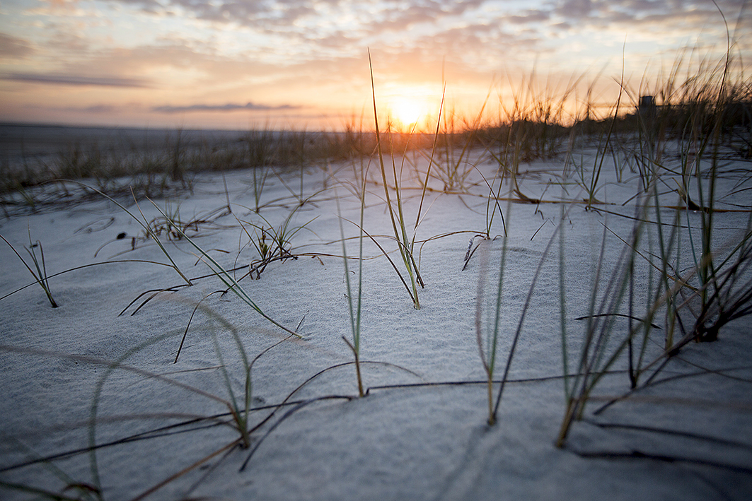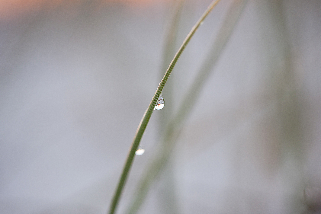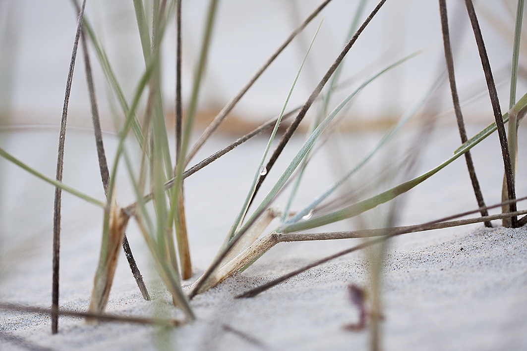 Ditching the shoes I feel the cool grit of the sand, that is becoming a welcoming sensation beneath my bare feet. I drop my shoe and there under the pastel pink sky streaked with purples being lit by the golden glow of the sun was – a bright shiny object – don’t you just love it. With all that big stuff you would think it impossible to find glitter. But there it was. Silver diamantes tethered to pale green reeds on a blanket of white. A small string of water droplets on the leaves of the . Soon I was laying in the sand propped up to support the camera. Finally, I awoke from my bliss to see the sun had almost completed its work and the day was about to begin.